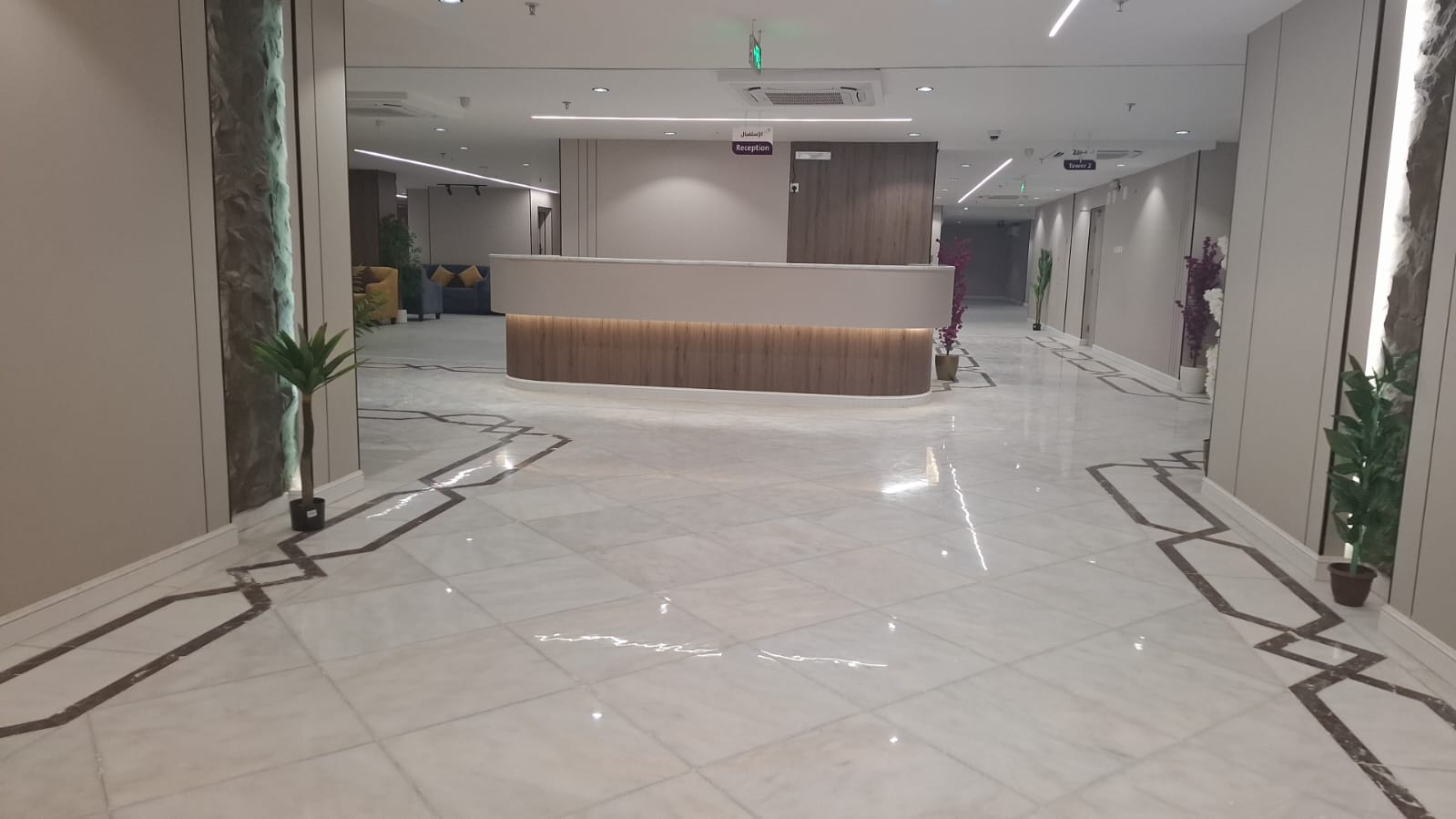 مكتب استقبال يعمل على مدار الساعة لخدمة النزلاء وتقديم المساعدة.